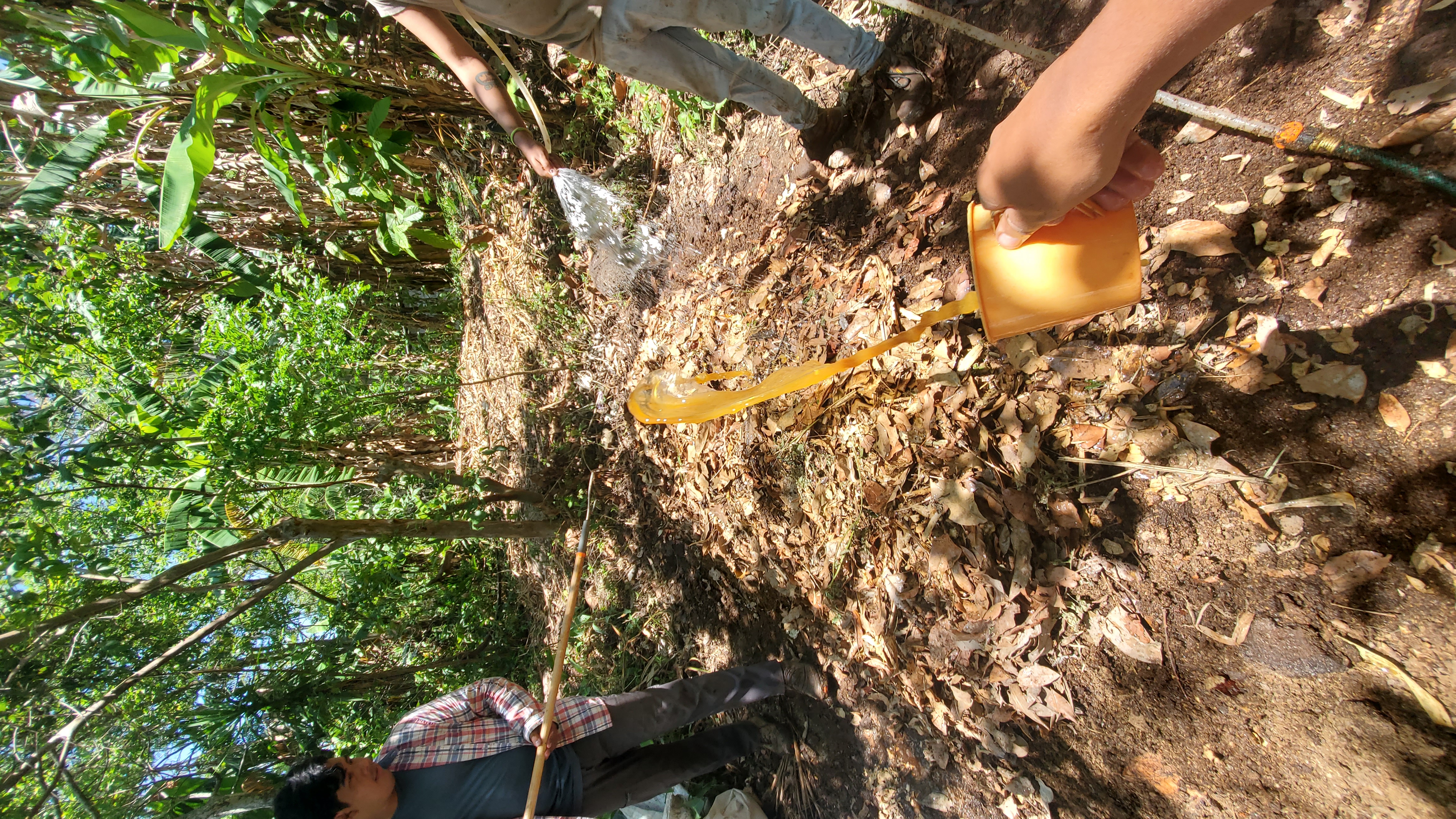 Ambos crecen solos en la finca y actualmente no estamos cosechando todo lo que producen. En lugar de desperdiciarlos, la fruta que cae o no alcanzamos a recoger va directo a un barril de 100 litros con 1% de melaza. Se fermenta durante 7 días, se renueva cada semana, y se incorpora a cada pila nueva que hacemos.