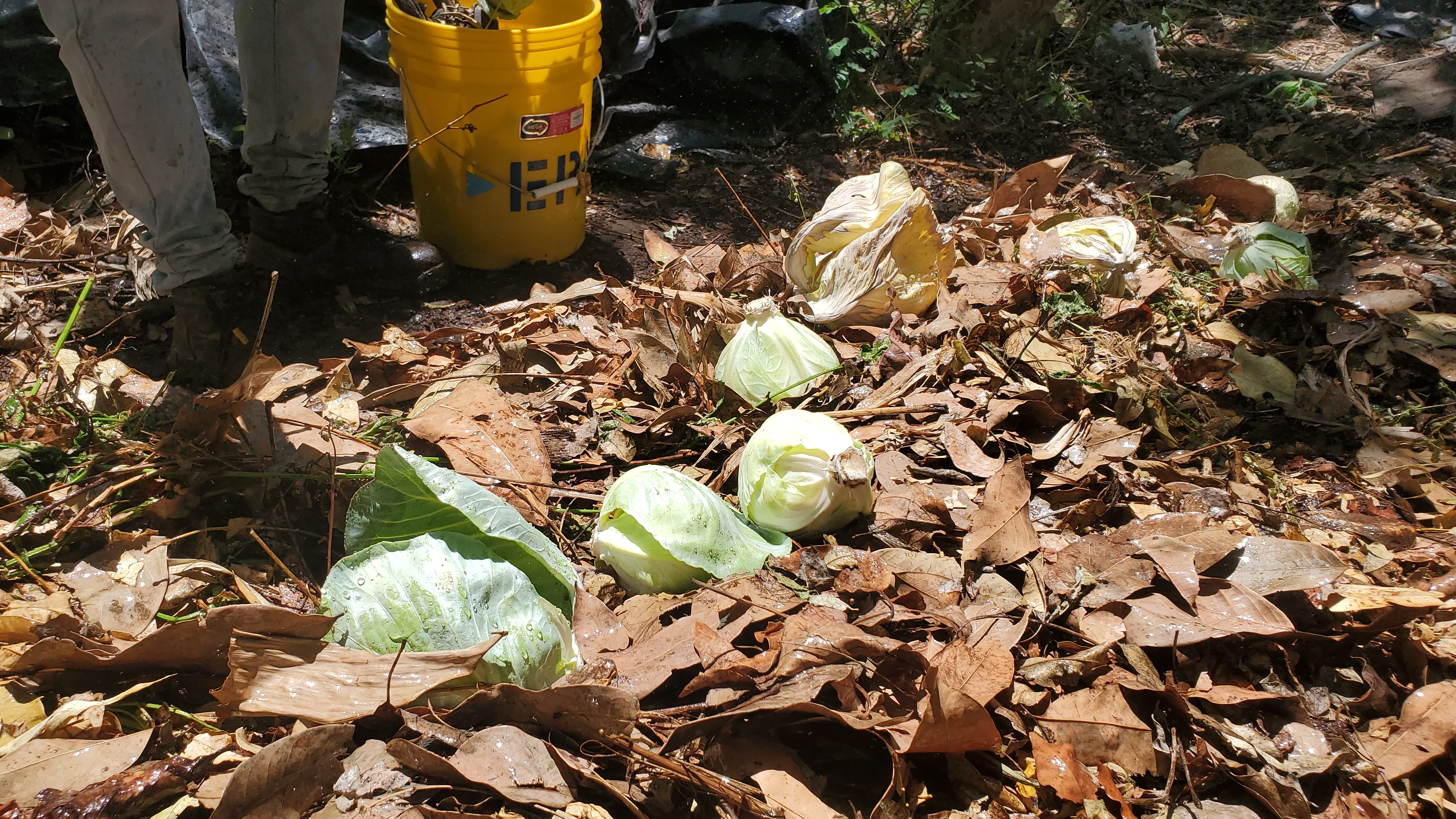 Hay dos tipos de producción en Amaviora. La que nosotros sembramos activamente — lechuga, pepino, tomate, okra, ayote, repollo, maíz — y la que la tierra produce sola: mangos, pacayas, arrayanes, guineos de seda, guineos majonchos, zapote, guindas, marañón japonés.